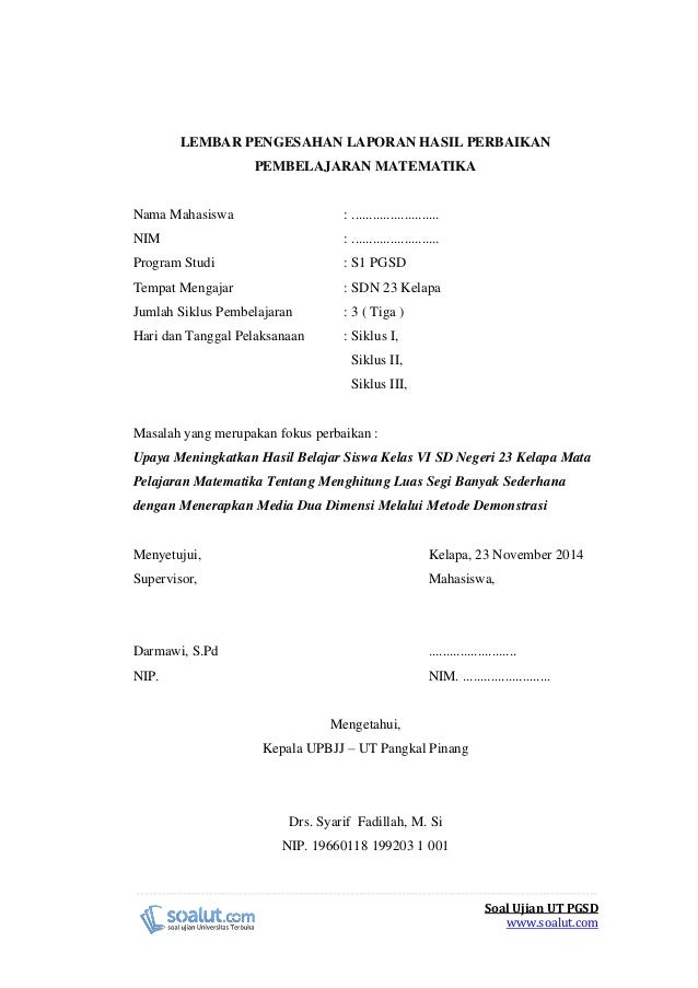 Contoh laporan praktek ut pgsd semester 2 pdgk4107 praktikum ipa di sd modul 5 k. Contoh karil ut pgsd karya ilmiah kelas ii pembelajaran kontekstual contoh laporan pkp ut pgsd ipa materi perpindahan energi panas pema contoh laporan pkp ut Inilah pembahasan selengkapnya mengenai contoh laporan pkp matematika kelas 3. Download laporan pkp ut terbaru dan terlengkap 2016. Latar belakang masalah pembelajaran matematika di sekolah dianggap oleh sebagian siswa adalah mata pelajaran yang sulit.