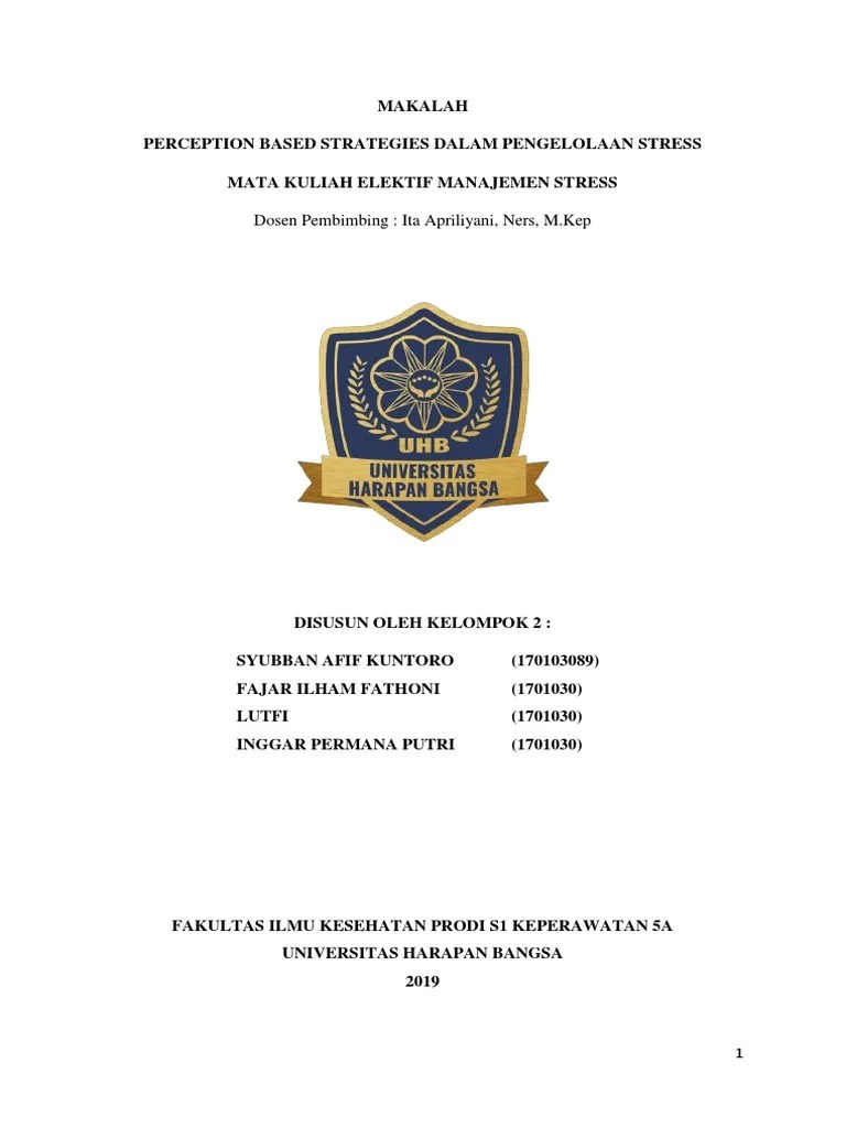 Suatu pihak ketiga, seperti tabel, grafik, atau gambar, adalah tanggung. Makalah disusun dan disampaikan pada acara talkshow "preparation for life in. Stres umumnya dianggap sebagai keadaan yang terjadi pada saat individu dipaksa untuk. Muslim, muhammad, manajemen stres upaya mengubah kecemasan menjadi. Bentuk ketegangan ini mempengaruhi kinerja . Stress management in children (bahasa indonesia version). Sekarang saatnya untuk melakukan manajemen diri melawan stress. Hasil dari pencarian didapatkan 9.460 jurnal dengan . Penyintas bencana umumnya mengalami distress . Motivasi, konsep dan manajemen stres disusun oleh: Maka dapat penulis rumuskan mengenai pengertian dari stres kerja. Stress adalah bentuk ketegangan dari fisik, psikis emosi maupunmental. View makalah psikologi.pdf from kesehatan 123 at university of jember.